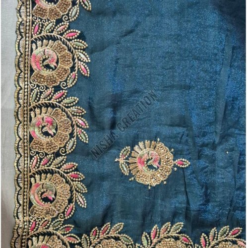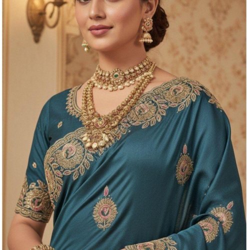 Rama Blue Embroidery Silk Saree